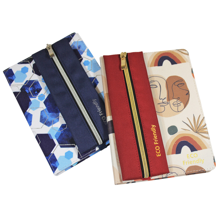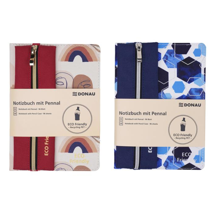 Blok má približne formát A5 so samostatným puzdrom na perá, obal a peračník z recyklovaného PET, 96 listov, papier 70 g/m², bodkovaná mriežka.