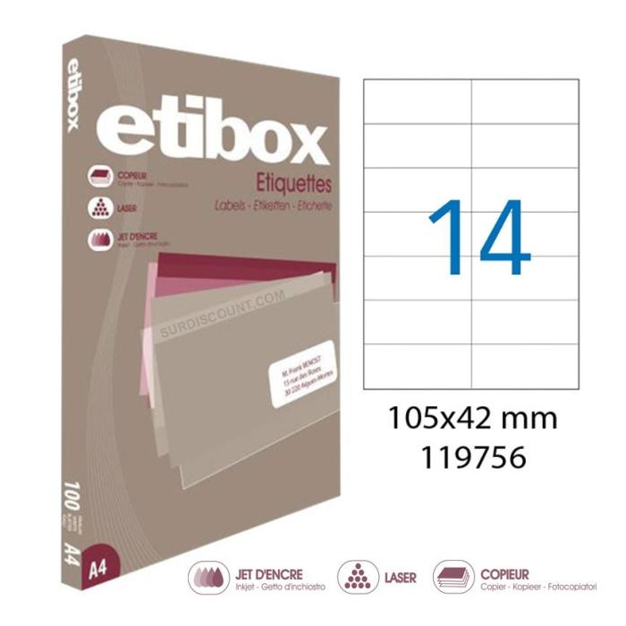 Etikety univerzálne 105x42,4mm Etibox A4 100 hárkov