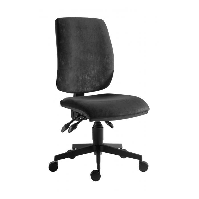 Kancelárska pracovná stolička bez podrúčiek s vysokým kvadratickým operadlom s asynchrónnym mechanizmom.