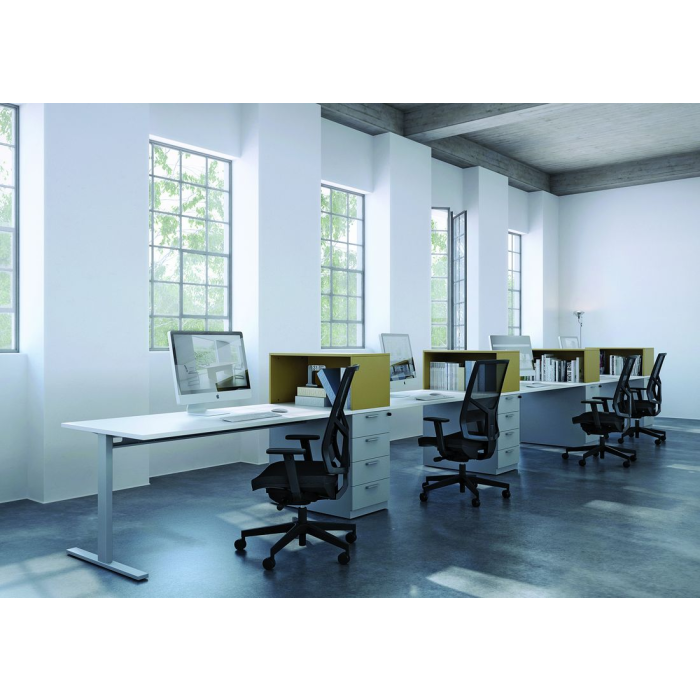 Kancelárska stolička, operadlo so sieťovinou a výškovo nastaviteľnou bedrovou výstuhou.