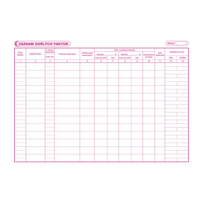 Kniha došlých faktúr, A4, 30 listov