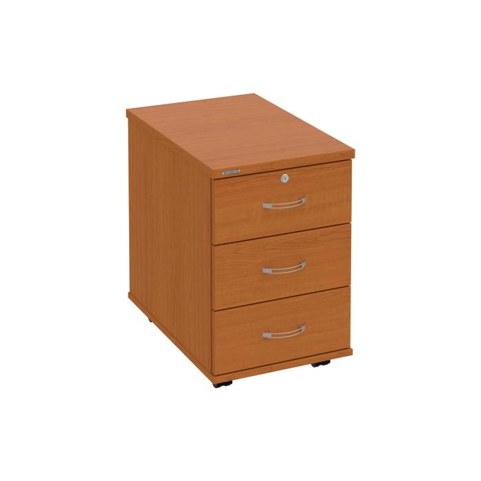 Kontajnery - všetko uložené a vždy poruke. Kontajnery sa väčšinou umiestňujú pod stoly. Mobilné modely sú vybavené kolieskami, je možné ich premiestniť podľa potreby. Základným materiálom korpusov je kvalitná laminovaná drevotriesková doska hrúbky 18 mm. Pre dlhšiu životnosť je na horný diel korpusu použitá doska, ktorej hrúbka je 25 mm. Korpusy a čelá zásuviek sú chránené proti poškodeniu hranou ABS 2 mm. Horná doska ma hĺbku 80. 3-zásuvkový kontajner má uzamykatelnú iba 1 zásuvku. Zásuvky sú z plastu, ktorý je ľahko umývateľný a vhodný pre jednoduchú údržbu. Praktickou súčasťou vrchnej zásuvky je prehľadný organizér a priestorové deliace priečky. Vaše ceruzky, sponky a ďalšie kancelárske potreby budú vždy na poriadku. Organizér a deliace priečky sú súčasťou každého kontajnera. Na kontajnery Hobis sa vzťahuje päťročná záruka.