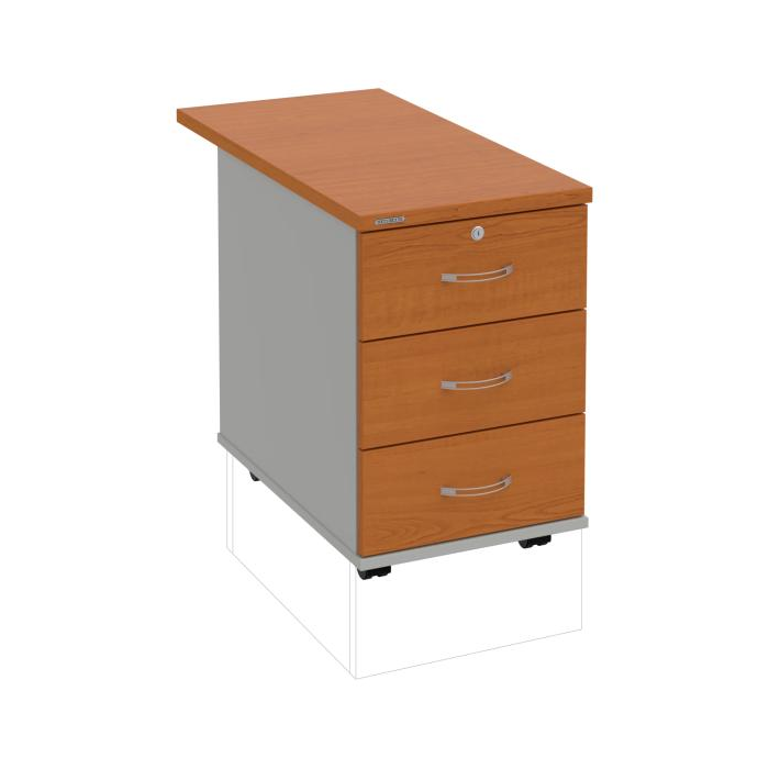 Kontajnery - všetko uložené a vždy poruke. Kontajnery sa väčšinou umiestňujú pod stoly. Mobilné modely sú vybavené kolieskami, je možné ich premiestniť podľa potreby. Základným materiálom korpusov je kvalitná laminovaná drevotriesková doska hrúbky 18 mm. Pre dlhšiu životnosť je na horný diel korpusu použitá doska, ktorej hrúbka je 25 mm. Korpusy a čelá zásuviek sú chránené proti poškodeniu hranou ABS 2 mm. Horná doska ma hĺbku 80. 3-zásuvkový kontajner má uzamykatelnú iba 1 zásuvku. Zásuvky sú z plastu, ktorý je ľahko umývateľný a vhodný pre jednoduchú údržbu. Praktickou súčasťou vrchnej zásuvky je prehľadný organizér a priestorové deliace priečky. Vaše ceruzky, sponky a ďalšie kancelárske potreby budú vždy na poriadku. Organizér a deliace priečky sú súčasťou každého kontajnera. Na kontajnery Hobis sa vzťahuje päťročná záruka.