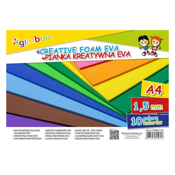 Kreatívna pena A4 v 10 žiarivých farbách Extrémne flexibilná, ľahká a ľahko sa s ňou pracuje Ideálna pre kreatívne aktivity v škole, doma a v štúdiu Zabalená vo fólii Formát: A4 Počet listov: 10 Hrúbka: 1,5 mm Farba: Rôzne farby