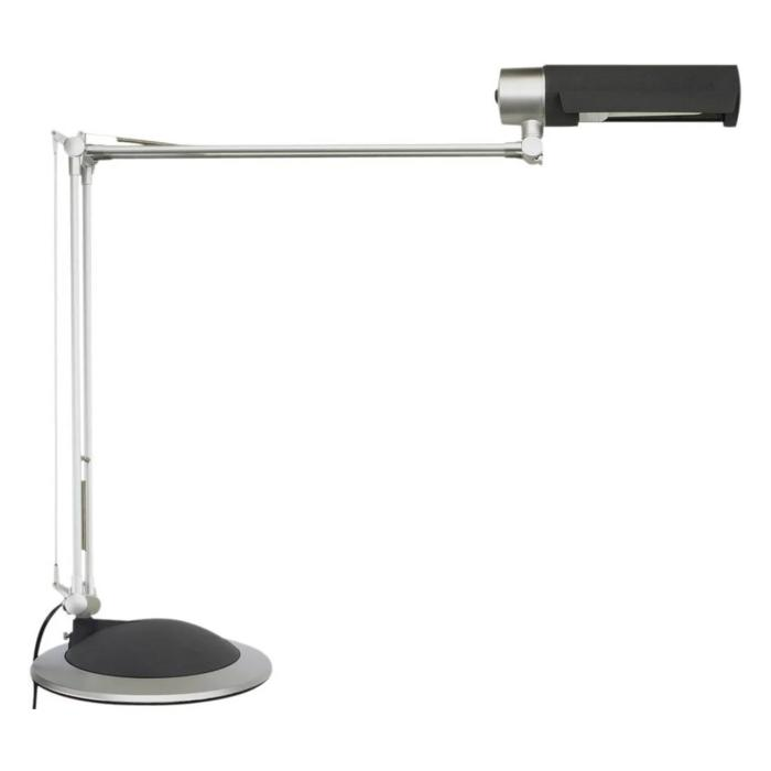 Lampa energeticky úspornej triedy „A“ s hliníkovými ramenami vysokej kvality a rádiusom 160 stupňov. Rotačná kovová základňa s elegantným antracitovým povrchom, nastaviteľné ramená a hlavica. Dĺžka ramien 41 cm, výška pracovnej pozície 54 cm, výkyvná a rotačná antireflexná hlavica dĺžky 21 cm s neutrálnym bielym svetlom a vypínačom. Lampa je dodávaná s alternatívnym kovovým úchytom na hrúbku stola do 5,5 cm. Kábel dĺžky 2 m. Dodávaná s 20W úspornou žiarivkou E27. Náhradná žiarivka obj. kód MA0828 20.