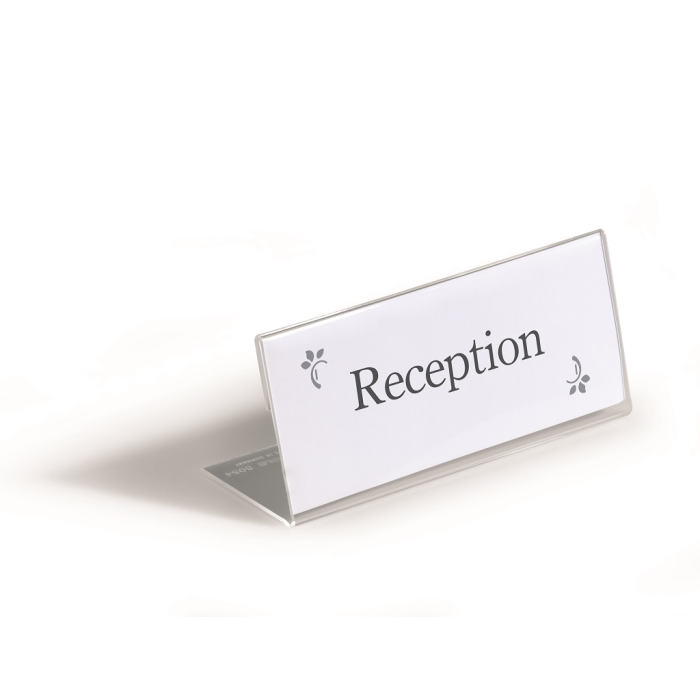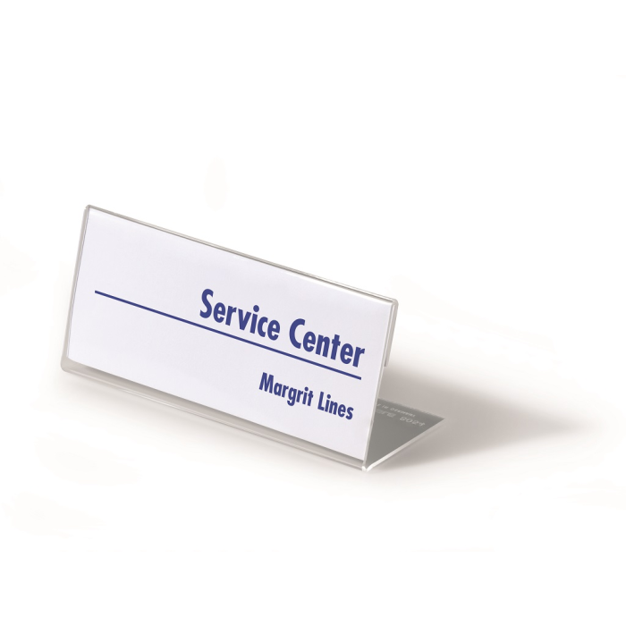 Stabilná stolová menovka „L“ profilu vyrobená z akrylu. Vhodná na konferencie, recepčné pulty, ceny tovarov a popis produktov. Väčšie balenie 10 ks.