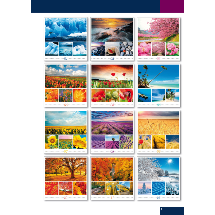 Rozmer: 420 x 420 mm. Obálka : disperzný lak. Rozsah: 14 listov. Kalendárium: univerzálne. Väzba: špirála. Balenie: 10 kusov.