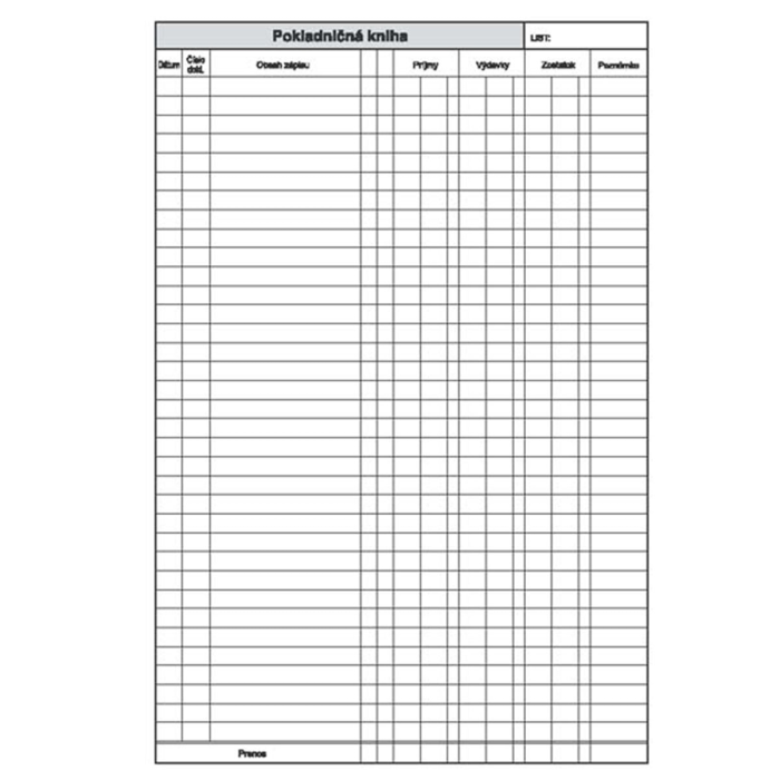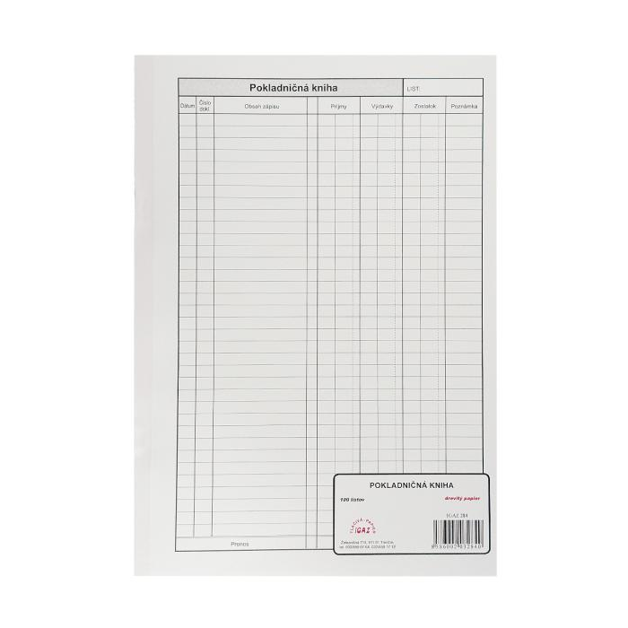 Pokladničná kniha, A4, nečíslovaná, 100 listov