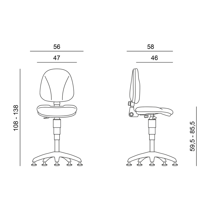 Pokladničná stolička 1040 Ergo D2 čierna s klzákmi