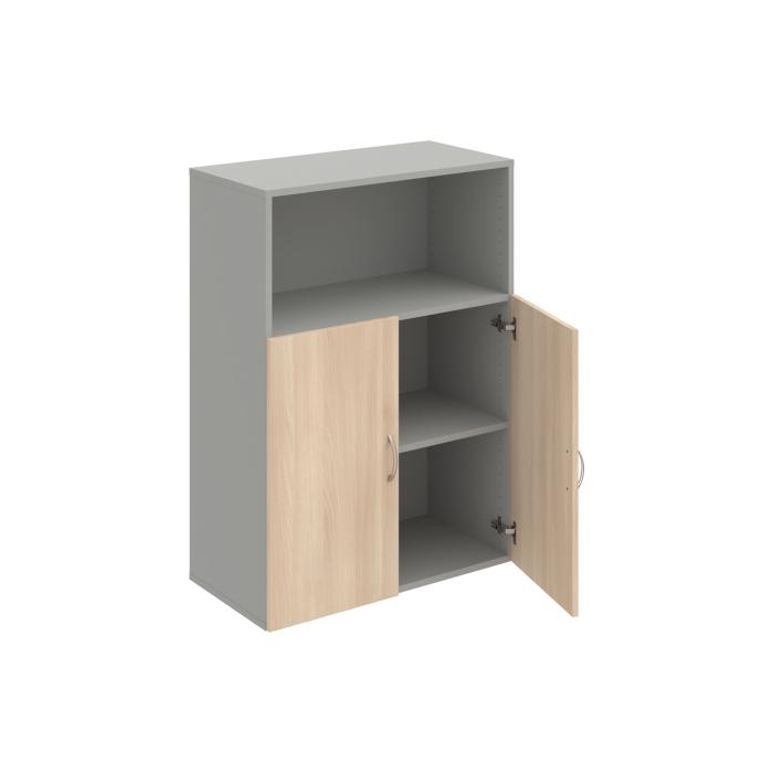 Kombinovaná skriňa - dvere/nika. Dôraz na funkčnosť a cenu. Kvalita a variabilita s nízkymi obstarávacími nákladmi. Materiály výrobcov z Európskej únie. Obojstranne pohľadový chrbát. Zabezpečenie políc proti náhodnému vysunutiu. 45 rôznych prvkov pre Vaše potreby a požiadavky. V našej ponuke nájdete skriňové moduly výšky 185 cm, 111 cm alebo 74 cm a šírky 80 cm alebo 40 cm. Hĺbka všetkých modelov skríň radu Drive je 40 cm (42 cm s dverami). Chrbát, vyrobený z 3 mm hrubých dosiek HDF, je obojstranne pohľadový, takže skrine môžete použiť ako priestorový deliaci prvok. Vďaka polohovateľným policiam (hrúbky 18 mm) je možné priestor prispôsobiť Vašim predstavám. Základná výška úložného priestoru je prispôsobená výške štandardného šanónu. Dvere sú chránené 2mm hranou ABS a osadené kvalitným kovaním s doživotnou zárukou. Okrem plných a presklených dverí Vám ponúkame aj skrine s roletovým systémom. Pokiaľ sa rozhodnete pre umiestnenie skríň na podlahu, nezabudnite si doobjednať rektifikačné nohy, ktoré nie sú štandardnou súčasťou objednávky. Aby sa zásielka dostala v poriadku až do Vašej kancelárie, dodávame skrine demontované v niekoľkých samostatných a bezpečne zabalených balíkoch. Súčasťou každého balenia je tiež prehľadný návod. Na skrive Drive dostanete záruku 5 rokov.