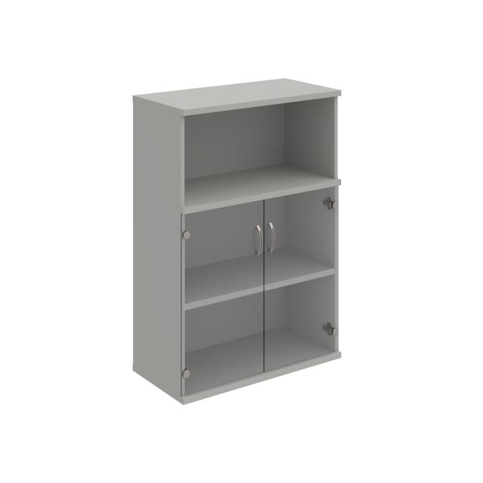 Kombinovaná skriňa - dvere/nika. Kancelárske skrine STRONG majú robustnú konštrukciu a vyššiu nosnosť políc ako bežné kancelárske skrine.V ponuke sú skriňové moduly s výškou 185 cm, 111 cm alebo 74 cm a šírky 80 cm alebo 40 cm. Hĺbka všetkých modelov skriňového radu STRONG je 40 cm.Chrbát, vyrobený z 8 mm hrubých dosák, je obojstranne pohľadový, takže skrine môžete použiť ako priestorový deliaci prvok. Hrúbka samotných políc je 25 mm, čo znamená nosnosť 80 kg na 1 policu.Korpusy, dvierka a police skríň sú olepené odolnou 2mm ABS hranou, ktorá garantuje dostatočnú ochranu proti poškodeniu.