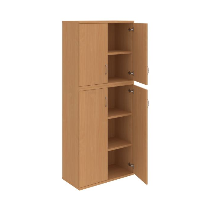 Kombinovaná skriňa - dvere/nika. Kancelárske skrine STRONG majú robustnú konštrukciu a vyššiu nosnosť políc ako bežné kancelárske skrine.V ponuke sú skriňové moduly s výškou 185 cm, 111 cm alebo 74 cm a šírky 80 cm alebo 40 cm.Hĺbka všetkých modelov skriňového radu STRONG je 40 cm.Chrbát, vyrobený z 8 mm hrubých dosák, je obojstranne pohľadový, takže skrine môžete použiť ako priestorový deliaci prvok. Hrúbka samotných políc je 25 mm, čo znamená nosnosť 80 kg na 1 policu.Korpusy, dvierka a police skríň sú olepené odolnou 2mm ABS hranou, ktorá garantuje dostatočnú ochranu proti poškodeniu.