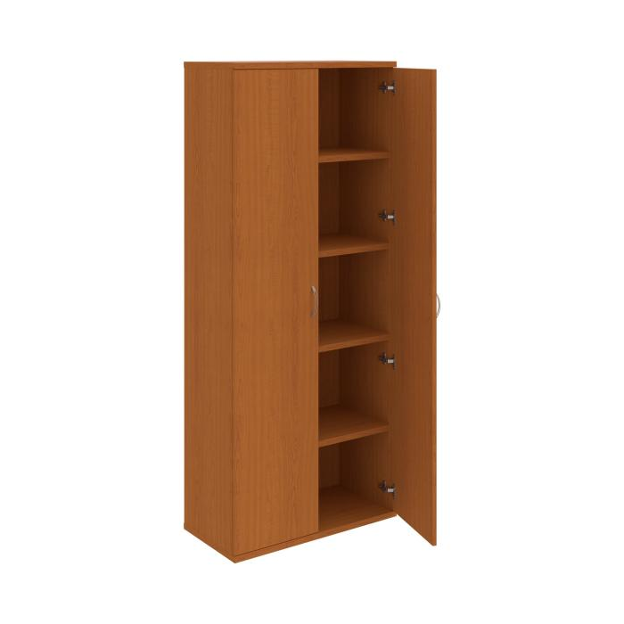 Kancelárske skrine STRONG majú robustnú konštrukciu a vyššiu nosnosť políc ako bežné kancelárske skrine.V ponuke sú skriňové moduly s výškou 185 cm, 111 cm alebo 74 cm a šírky 80 cm alebo 40 cm.Hĺbka všetkých modelov skriňového radu STRONG je 40 cm.Chrbát, vyrobený z 8 mm hrubých dosák, je obojstranne pohľadový, takže skrine môžete použiť ako priestorový deliaci prvok. Hrúbka samotných políc je 25 mm, čo znamená nosnosť 80 kg na 1 policu.Korpusy, dvierka a police skríň sú olepené odolnou 2mm ABS hranou, ktorá garantuje dostatočnú ochranu proti poškodeniu.