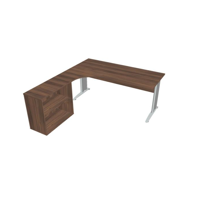 Pracovný stôl Cross, ergo, pravý, 180x75,5x200 cm, orech/kov