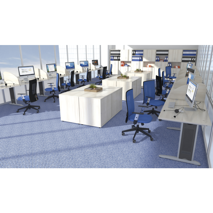 Kancelárský nábytok Flex sa vyznačuje elegantným dizajnom a originalitou technického riešenia. Pracovné dosky s optimálnými rozmermi a tvarom využívajú ergonomicky a efektívne celú pracovnú plochu. Pracovná doska stola má hrúbku 25 mm a je olepená 2mm ABS hranou, ktorá stoly pomáha chrániť pred poškodením. O káble od PC alebo stolovej lampy, sa postará praktická priechodka, ktorá káble jednoducho zvedie pod dosku, kde si s nimi poradia šikovne skonštruované držiaky. Moderné kovové nohy vás oslovia súčasným dizajnom a funkčnosťou. Prepojené sú teleskopickým káblovým kanálom, vďaka ktorému je stôl dokonale stabilný aj bez pracovnej dosky. Okrem toho slúži kanál aj ako elegantný úkryt pre vedenie všetkej kabeláže vášho PC, ktorá je potom pod plastovým krytom kovovej nohy zvedená k podlahe.