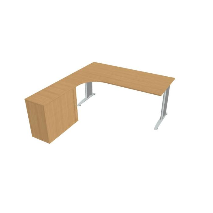 Pracovný stôl Flex, ergo, pravý, 180x75,5x200,0 (40x80) cm, buk/kov