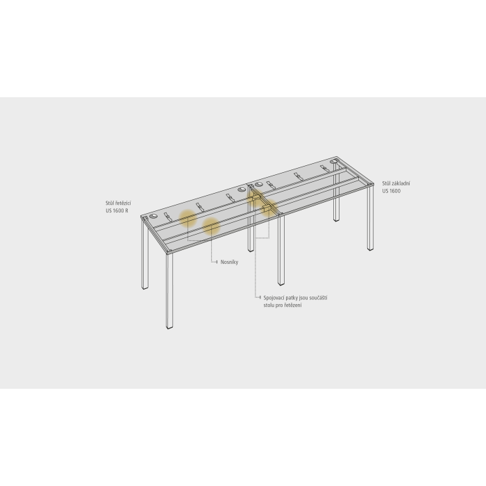 Pracovný stôl Uni k pozdĺ. reťazeniu, 160x75,5x60 cm, biela/biela