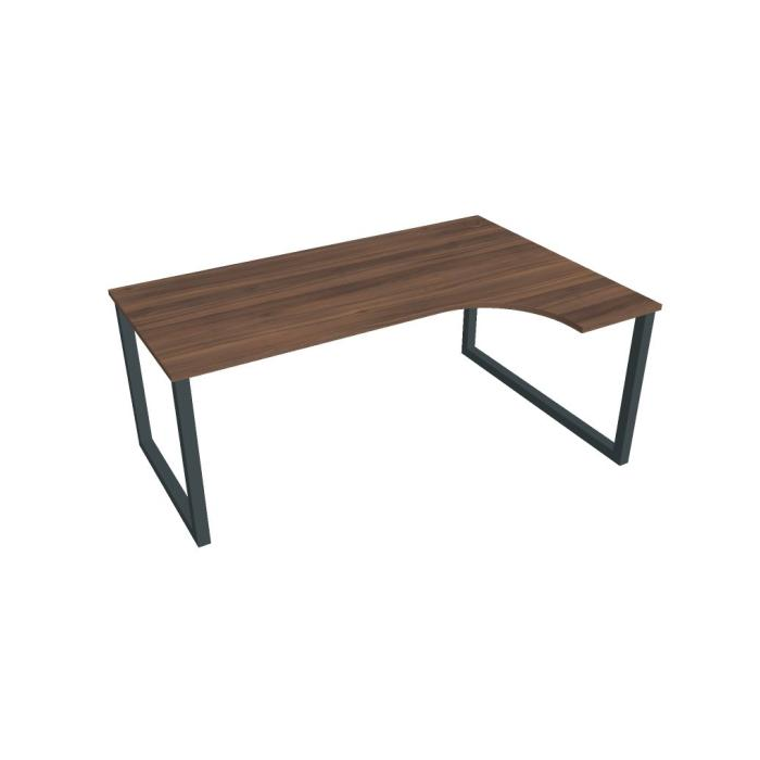 Pracovný stôl UNI O, ergo, ľavý, 180x75,5x120 cm, orech/čierna