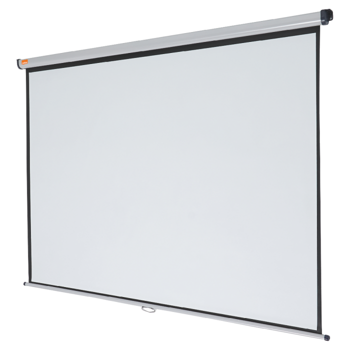 Žiarivý matne biely povrch plátna zaručuje ostrý, podrobný obraz, ktorý zreteľne uvidia všetci diváci. Dá sa ľahko zasunúť do puzdra, aby bolo chránené pred poškodením, alebo uložené, keď nie je používané. Doplnkové držiaky umožňujú inštalovať plátno pred popisovaciu tabuľu alebo ho skloniť smerom k divákom. 2000 × 1513 mm.