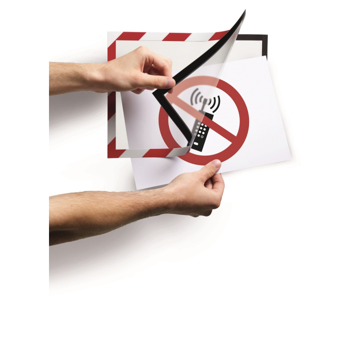 Bezpečnostný samolepiaci informačný panel s prednou magnetickou časťou. Ideálny na vystavovanie veľmi dôležitých informácií. Informácie sú čitateľné z oboch strán. Vhodný na hladké a pevné povrchy. Formát A4. Farba červeno-biela.