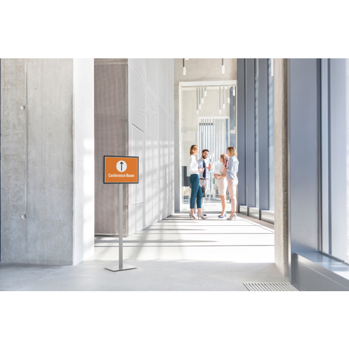Vysokokvalitné elegantné hliníkové stojany s informačnou tabuľkou Info Basic formátu A3, použiteľnou na výšku alebo na šírku. Zaťaženie stojana a gumové podložky zabezpečujú jeho stabilitu. Protiodrazový panel z kvalitného plexiskla je možné otočiť vertikálne alebo horizontálne a naklápať v rozmedzí 10 stupňov. Maximálna výška 1,30 m/1,40 m.