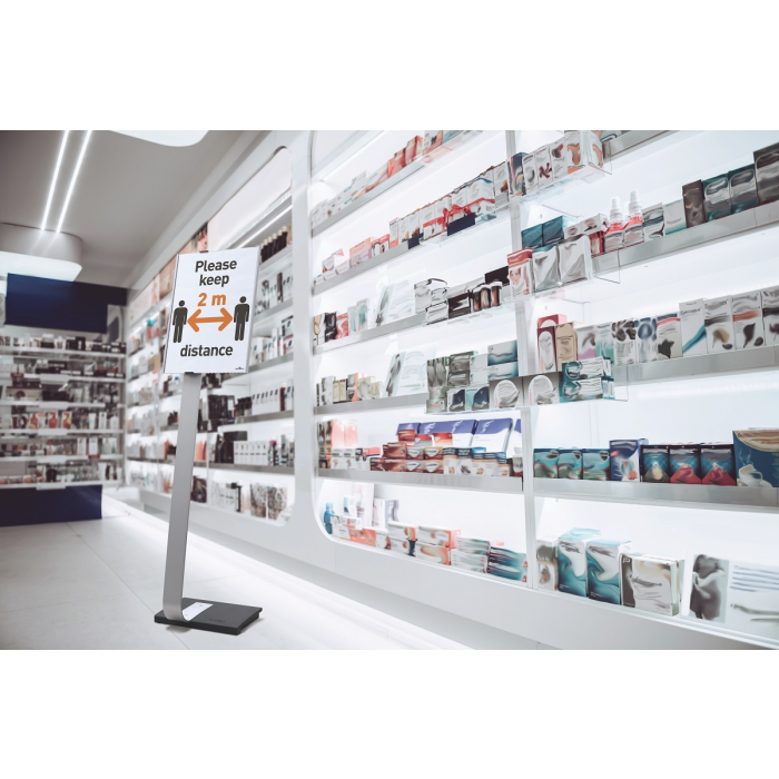 Vysoko kvalitný elegantný hliníkový stojan s informačným panelom formátu A3, použiteľným na výšku alebo na šírku. Zaťaženie stojana a gumové podložky zabezpečujú stabilitu. Protiodrazový panel je možné otočiť vertikálne alebo horizontálne a naklápať v rozmedzí 10 stupňov.Šablóny na potlač sú voľné stiahnuteľné na www.durable.de.