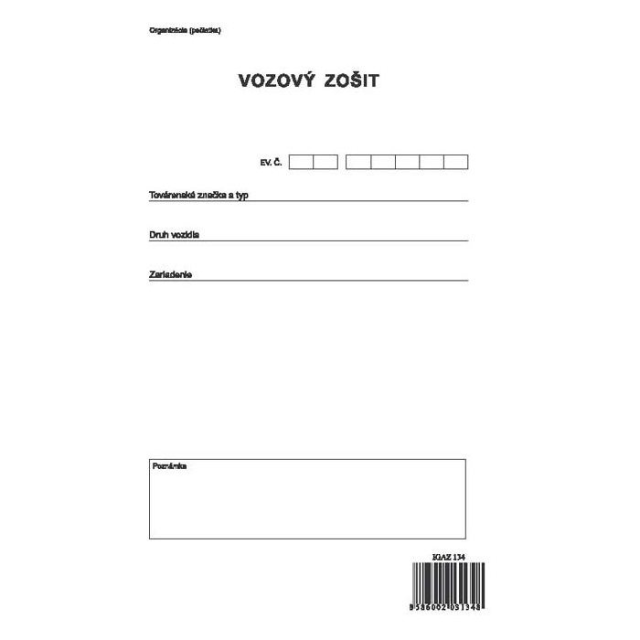 Tlačivo : Vozový zošit formát A4, obsahuje 152 strán.