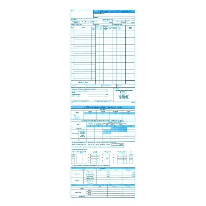 Tlačivo : Vyúčtovanie cestovných výdavkov/zahraničnej pracovnej cesty, formát A4 100ks.